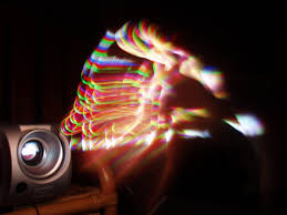 emitindo sua luz através de um PRISMA que separa as luzes em feixes nas cores